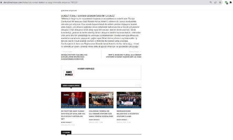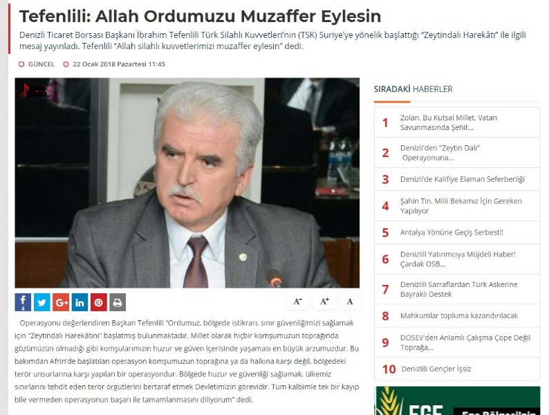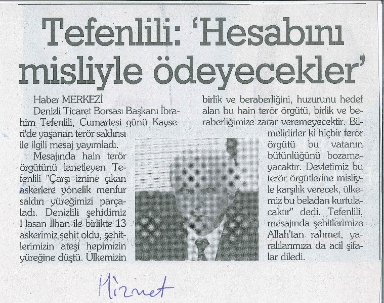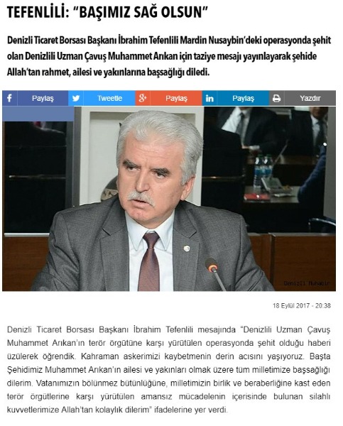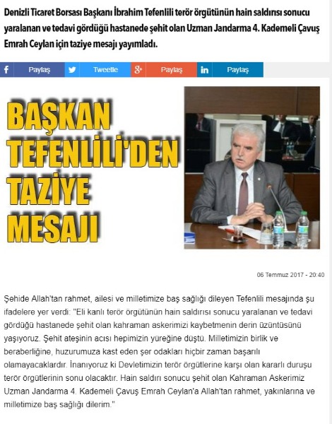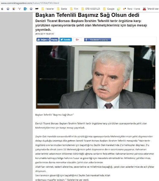 Zeytindalı Harekatı Taziye Mesajı -