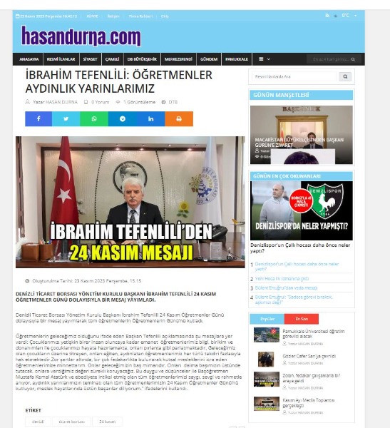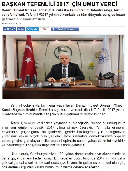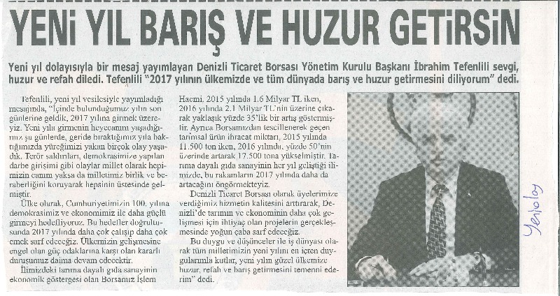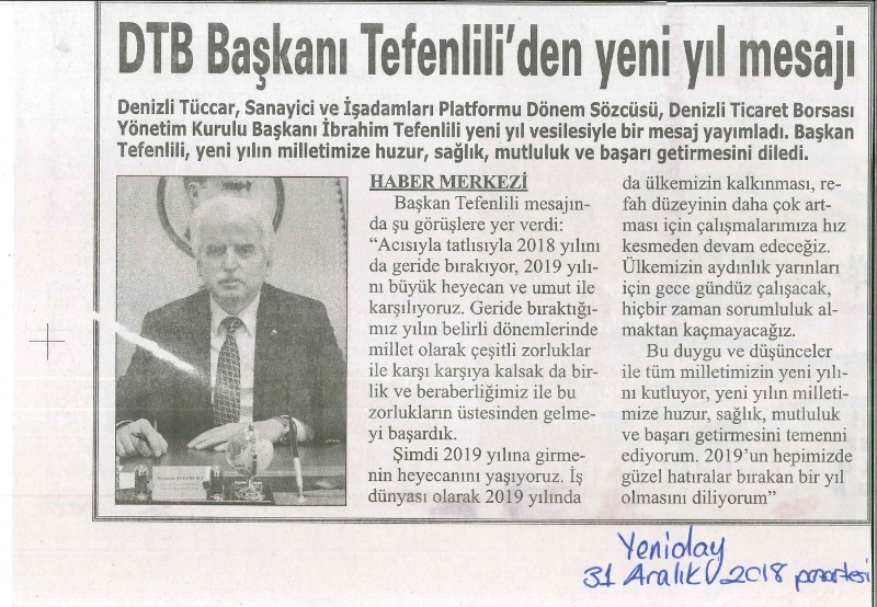 BAŞKAN İBRAHİM TEFENLİLİ YENİ YIL MESAJI -