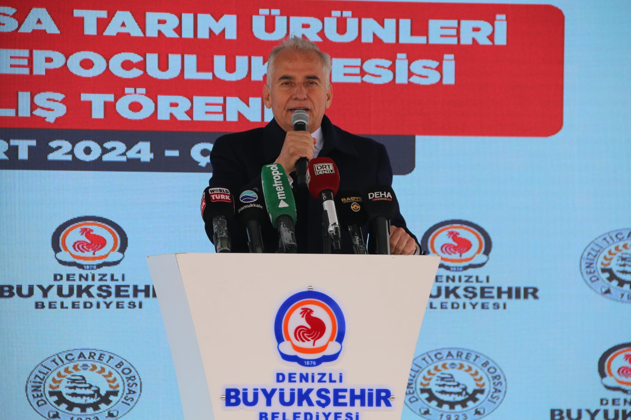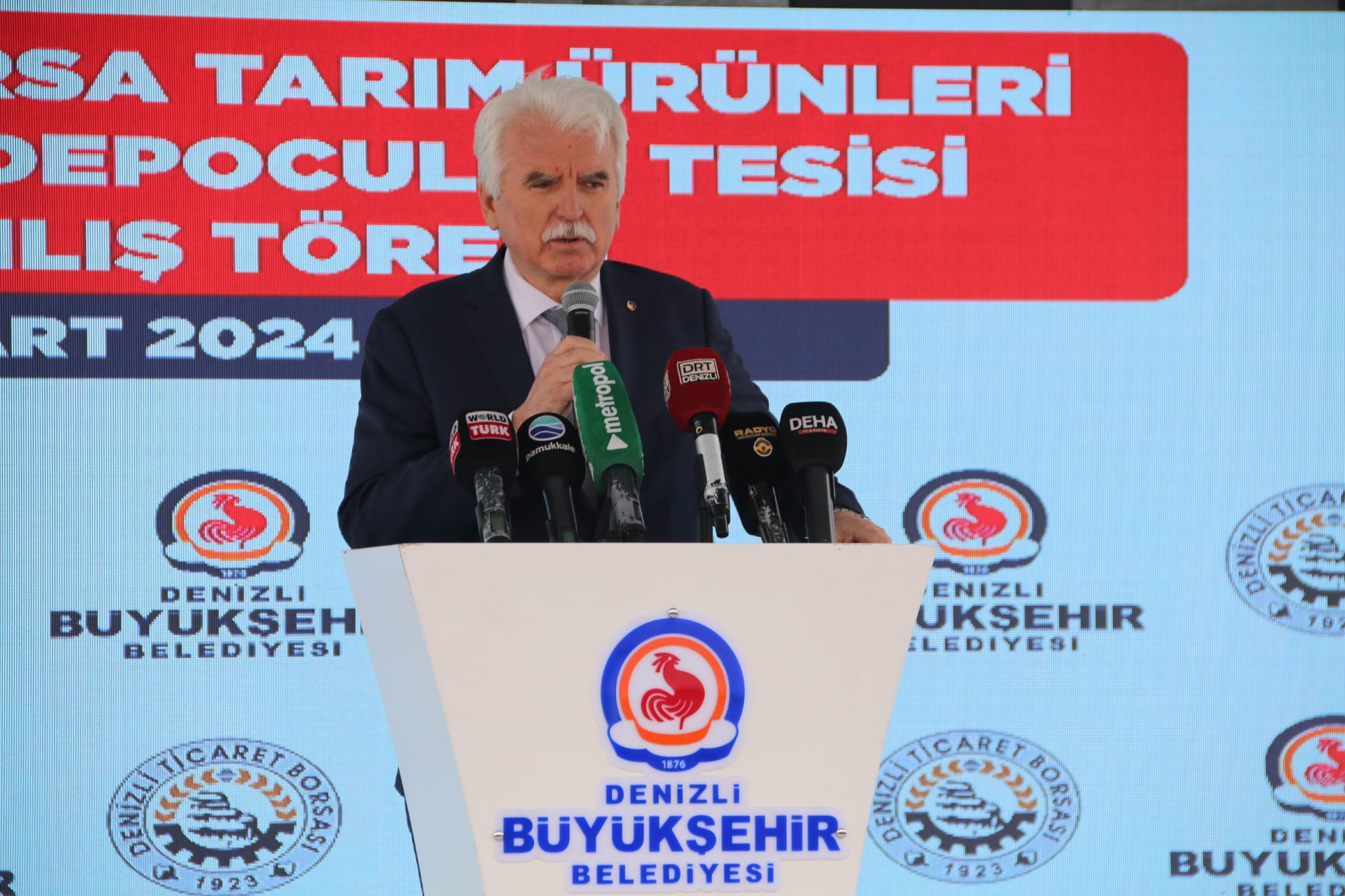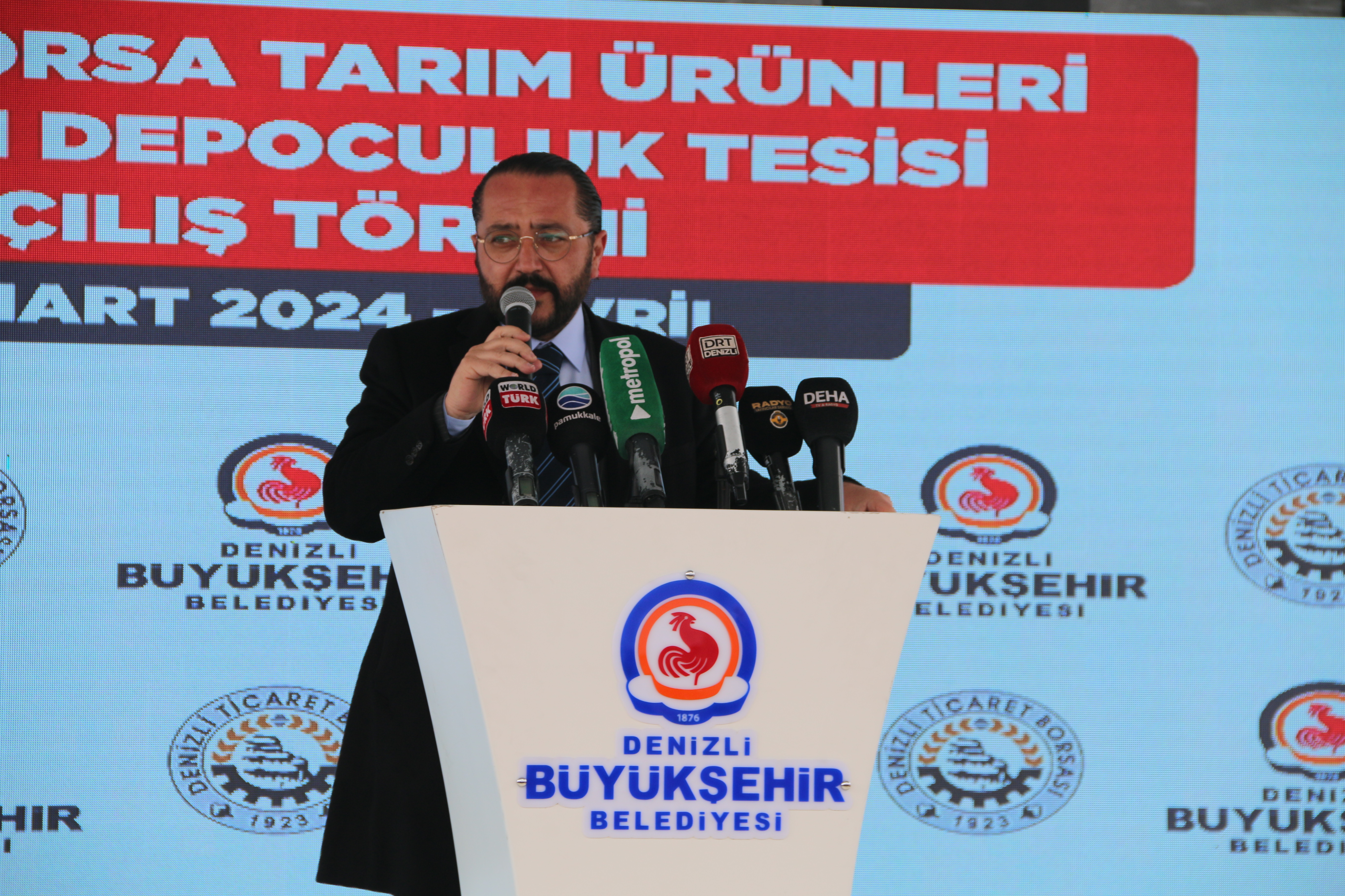 Törenin açılış konusmasını yapan Başkan İbrahim Tefenlili; “Yıllarca lisanslı depoculuk tesisi hayalini kurduk ve bu tesislere Büyükşehir Belediye Başkanı Osman Zolan’ın tarıma verdiği önem sayesinde kavuştuk.Uzun yıllar boyu hizmet edecek bu eser Denizlimize hayırlı ve uğurlu olsun. Tesisimiz 20 bin ton kapasiteye sahiptir. Faaliyete geçerek ilimiz tarımının önemli bir sorununu ortadan kaldıracak ve çiftçilerimizin yüzünü güldürecektir. Hem çiftçilerimiz ürünlerini uzun süre sağlıklı şartlarda depolayarak istediği fiyatlar oluşunca satma imkanına sahip olacak, hem de tüccarlarımız istediği zaman istediği miktarda ve istediği kalitede ürüne kavuşma imkanına sahip olacaktır. Diğer taraftan sağlıksız ortamlarda depolanması sebebiyle bozularak ziyan olan milyonlarca tona varan ürün, modern Lisanslı Depolarda ekonomiye kazandırılacaktır. Hayalimiz olan Lisanlı depoculuk tesislerini, çok değerli Büyükşehir Belediye Başkanımız Sn. Osman Zolan’ın vizyonu ve büyük desteği sonucu gerçekleştirdik” diye konuştu.