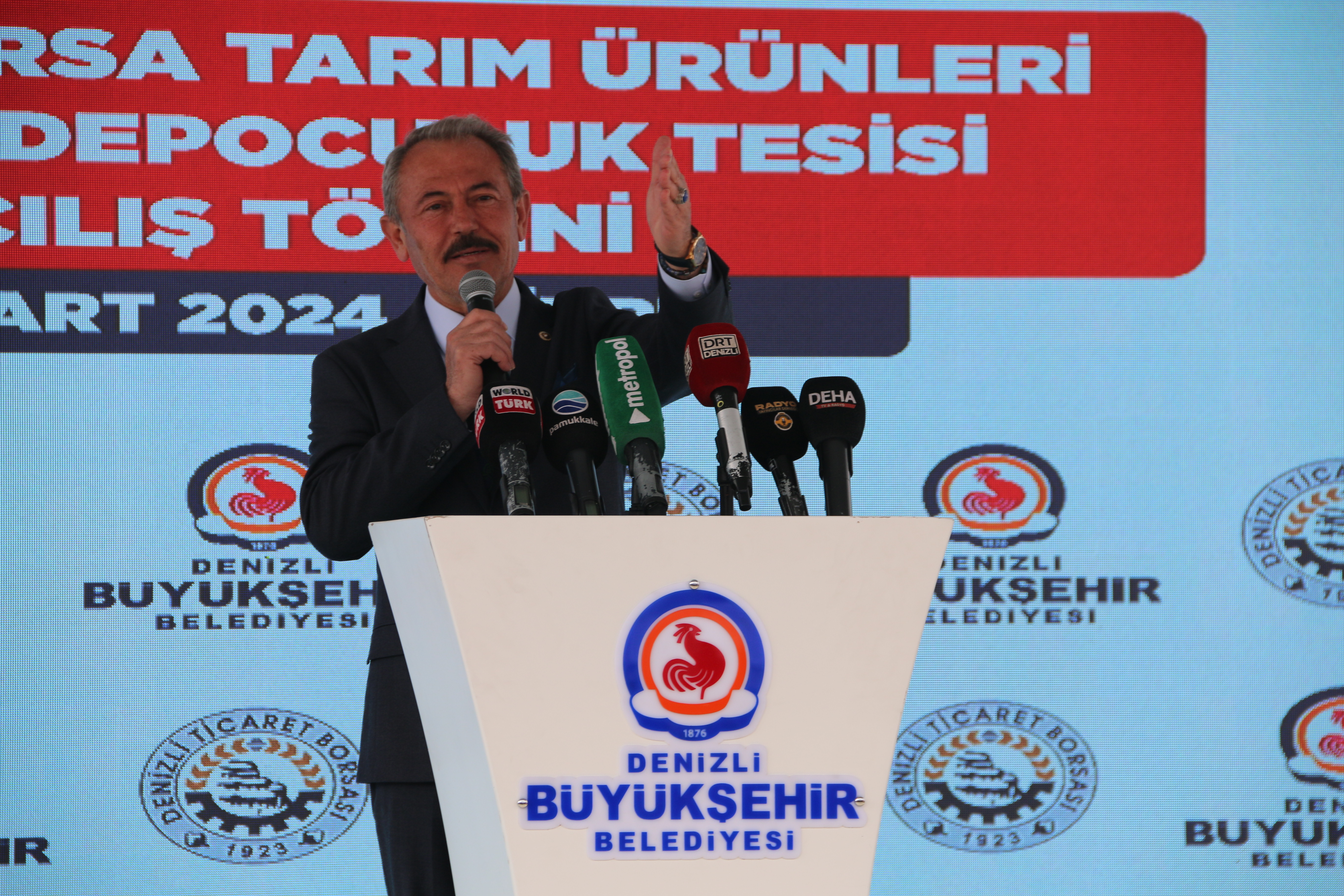 AK Parti Genel Başkan Yardımcısı Nihat Zeybekci ise, lisanslı depoculuk tesisinin hayati derecede önem taşıdığı ifade ederek, bu tesisin inşasında emek veren herkese teşekkür eti. Zeybekci, “Burada asıl en büyük alkışlanacak ve övülecek; Türkiye'de ilk defa bir belediye böyle bir işe destek verdi. Bu Türkiye'de ilk ve tektir. Öyle lafla değil. Bizim, ‘Gerçek belediyecilik’ dediğimiz işte bu. Sayın Cumhurbaşkanımıza, Tarım Bakanımıza, Ziraat Bankamıza emeği geçen herkese, Büyükşehir Belediye Başkanımıza ve Ticaret Borsası Başkanımıza Allah razı olsun diyorum” dedi. Konuşmaların ardından tesisin açılışı dualarla yapıldı.
