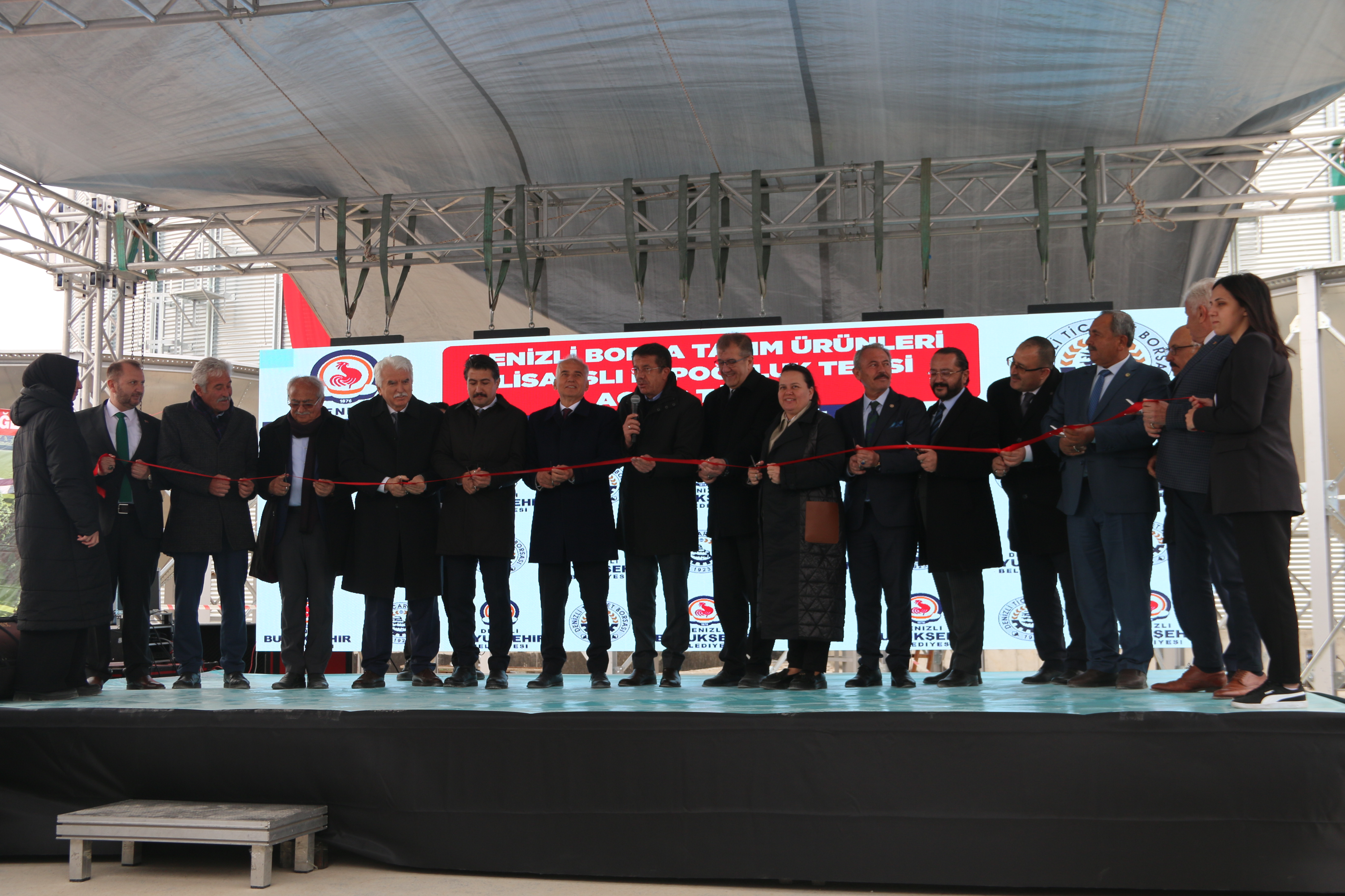 Denizli Ticaret Borsası’nın (DTB) Denizli Büyükşehir Belediyesi işbirliğiyle kent merkezinin ardından Çivril ilçesinde de yapımını tamamladığı ikinci lisanslı depoculuk tesisinin açılışı yapıldı. Törene; Denizli Ticaret Borsası Yönetim Kurulu Başkanı İbrahim Tefenlili, AK Parti Genel Başkan Yardımcısı Nihat Zeybekci, AK Parti Denizli Milletvekilleri Cahit Özkan, Şahin Tin ve Nilgün Ök, Denizli Büyükşehir Belediye Başkanı Osman Zolan, MHP Denizli İl Başkanı Mehmet Ali Yılmaz, kaymakamlar, DTB Meclis üyeleri, ilçe belediye başkanları, STK temsilcileri, üreticiler, davetliler ve çok sayıda vatandaş katıldı.